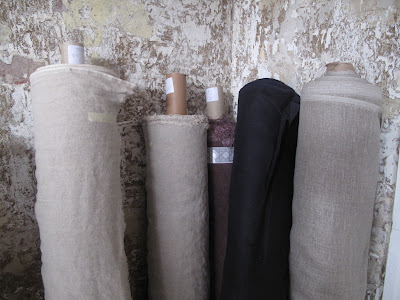 Today I have been playing with and making scarves from linen to put into Scarlet Jones. I have hemmed the side edges and I used the Rit dye in Fuchsia and black to dye them. I am also overdying stained and bright, gaudy old scarves, these are the results.